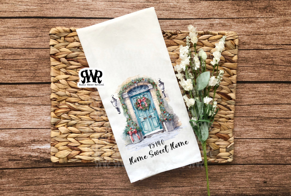 Don't see your town? NO PROBLEM, shoot us an email to Ali@rustywaterrevival.com and let us know the info. We will get it made for you. (please add the style in your email as we offer multiple style personalized towels)